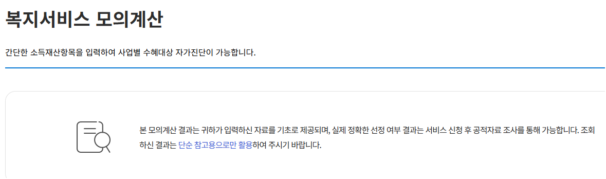제가 신청할 당시 가장 먼저 한 건 복지로 홈페이지에서 자격 확인하기였습니다. 복지로 사이트에서는 자가진단 기능을 제공하는데, 몇 가지 항목만 입력해도 본인이 대상에 해당하는지 바로 확인할 수 있습니다.