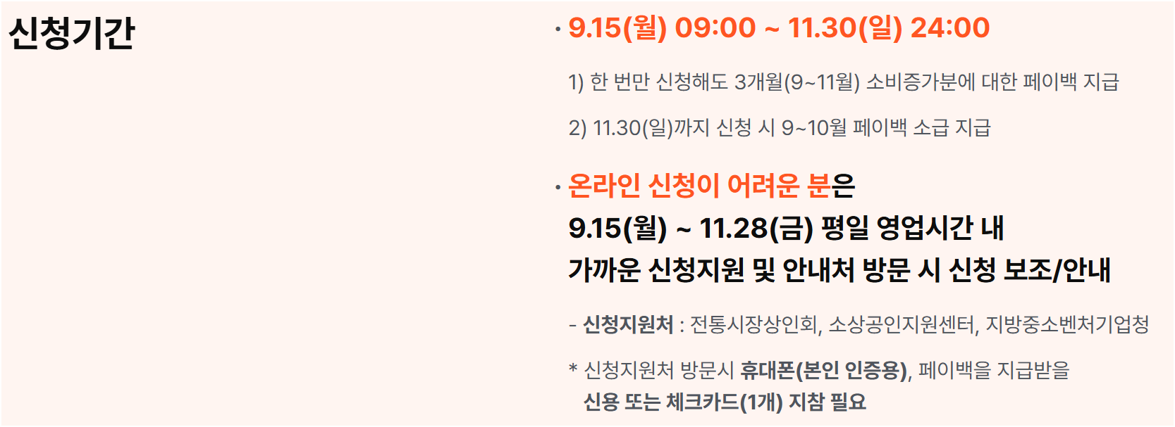 대상 기간: 지난해 월평균 카드 사용액 대비, 올 9월부터 11월까지의 월별 카드사용 증가분이 인정 대상