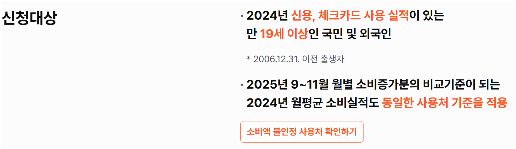 신청 자격: 만 19세 이상(해당 연도 기준), 2024년 카드 사용실적이 있는 신용·체크카드 사용자