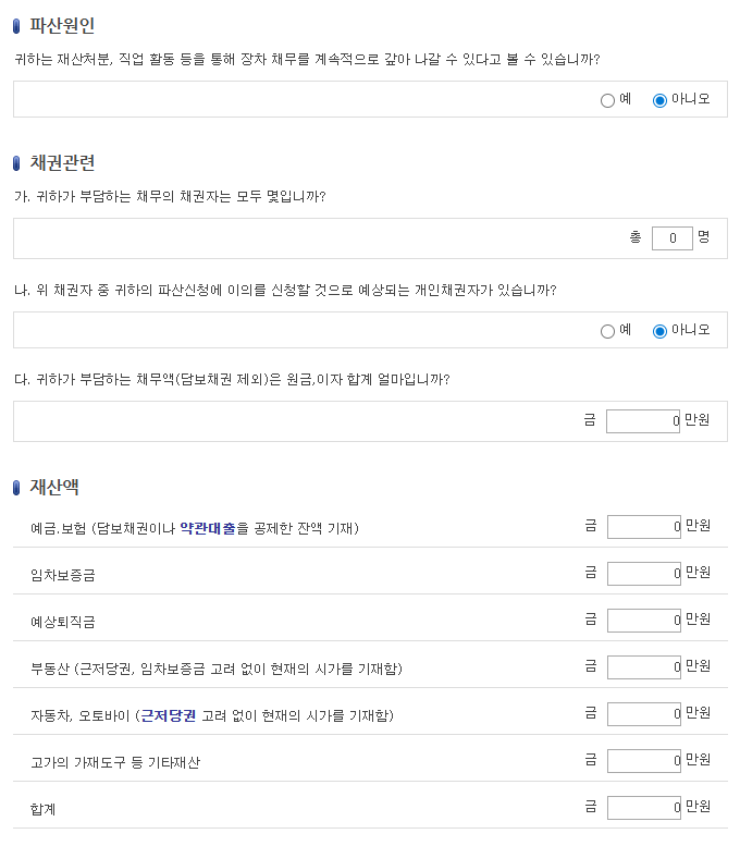 [ 📌 대한법률구조공단 : 개인파산 및 면책 신청 자격 자가진단 서비스 ]