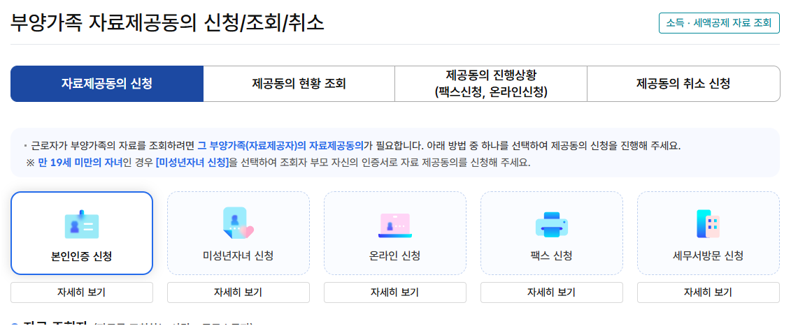 [ 📌 국세청 홈택스 : 부양가족 자료 제공 동의 및 인적공제 자격 확인 바로가기 ]