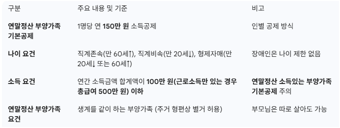 연말정산 부양가족 기본공제 요건 핵심 정리